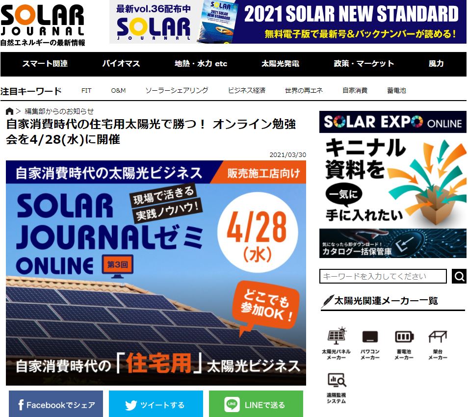 お問い合わせ イベントスケジュール 無料見積り・相談 電話で見積り・相談 0120-082-208 【受付】8:00~17:30【定休日】日曜日 電話で見積り・相談 HOMEイベント情報セミナーソーラージャーナル主催ビジネスセミナー 講師として全国の販売店様へセミナー講師をつとめさせていただきます ソーラージャーナル主催ビジネスセミナー 講師として全国の販売店様へセミナー講師をつとめさせていただきます 開催日時 2021年4月28日 (水) 15時から17時(会場:zoom) 詳しくはこちら > 会場 zoom 会場住所 東京ソーラージャーナル事務所からオンライン配信 開催日時 2021年4月28日 (水) 15時から17時 一言 今回は日本全国の販売店向けのセミナーとなります セミナー一覧はこちら イベント情報一覧はこちら スガワラ電気について 選ばれる理由 会社案内代表挨拶会社概要アクセスマップ 施工事例 施工事例一覧 冷暖房工事 自家消費型太陽光発電システム 産業用 法人様向け 家電品販売 取付 設置 住宅設備機器 修理 太陽光発電 故障 修理 交換 LED照明器具工事 新築住宅 石油給湯器 交換 修理 カーポートの新設 給排水工事 電気自動車充電設備 V2H新設工事 住宅リフォーム メンテナンス 空調設備工事 アンテナ工事 石油暖房工事 住宅用太陽光発電システム設置 ソーラーカーポート 産業用太陽光発電システム設置 蓄電池設置 住宅用太陽光発電システム+蓄電池新設工事 太陽光発電+ハイブリット蓄電池 新設工事 オール電化 エコキュート設置工事 お客様の声 お客様の声一覧 お役立ち情報 太陽光発電のポイント 住宅用をお考えの方 土地・工場・倉庫・アパート・マンションでの活用をお考えの方 蓄電池のポイント オール電化のポイント イベント情報 メンテナンス価格表 補助金情報 電気は自家消費の時代! 電気自動車は走る蓄電池 よくある質問 お問い合わせ お問い合わせ 無料お見積もり TOP 私たちについて 選ばれる理由 会社案内代表挨拶会社概要アクセスマップ 施工事例 施工事例一覧 エコキュート設置工事 ソーラーカーポート 冷暖房工事 自家消費型太陽光発電システム 産業用 法人様向け 家電品販売 取付 設置 住宅設備機器 修理 太陽光発電 故障 修理 交換 LED照明器具工事 新築住宅 石油給湯器 交換 修理 カーポートの新設 V2H新設工事 住宅用太陽光発電システム+蓄電池新設工事 給排水工事 電気自動車充電設備 住宅リフォーム メンテナンス 空調設備工事 アンテナ工事 石油暖房工事 太陽光発電+ハイブリット蓄電池 新設工事 住宅用太陽光発電システム設置 産業用太陽光発電システム設置 蓄電池設置 オール電化 お客様の声一覧 お役立ち情報 太陽光発電のポイント住宅用をお考えの方土地・工場・倉庫・アパート・マンションでの活用をお考えの方蓄電池のポイントオール電化のポイントイベント情報メンテナンス価格表補助金情報電気は自家消費の時代!電気自動車は走る蓄電池よくある質問 お問い合わせ お見積もり Copyright © 2018 スガワラ電気 All Rights Reserved. 岩手県一関市花泉町金沢字石名坂17 TEL:0191-82-3706 FAX:0191-82-1471
