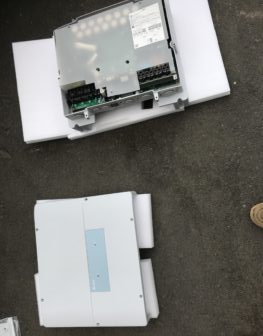 | お客様のご要望 | 20年近く経過した、シャープ製太陽光発電システム。ついにパワーコンディショナーが壊れ発電停止してしまいました。 この際、売電単価48円の買取期間が切れる前に、蓄電池を同時導入して、せっかくなのでデルタ電子製のハイブリット蓄電池システムを導入しました。 |